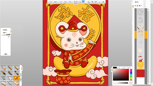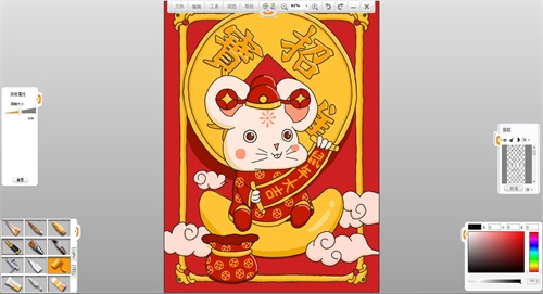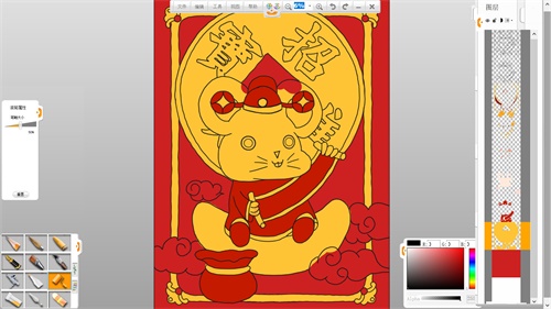 6、新建圖層,使用滾筒工具將老鼠皮膚和云朵上色;