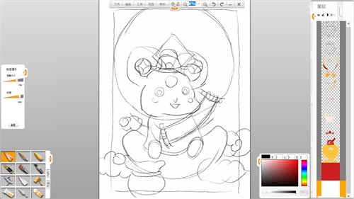 2、新建圖層,降低上一圖層的透明度,使用鉛筆畫出盡量流暢準確的線稿;