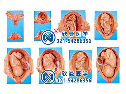 XM-803胎兒妊娠胚胎發(fā)育過程模型10件為一套,示胎兒十月妊娠發(fā)育過程與子宮的關(guān)系。