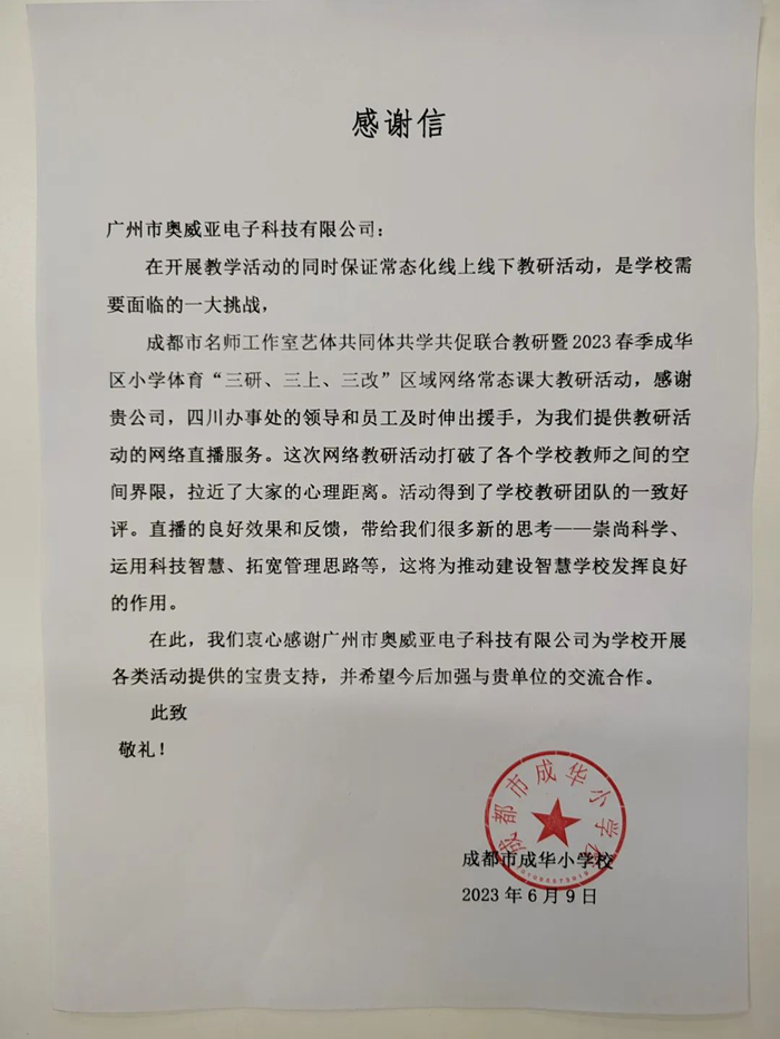 在四川,奧威亞的服務(wù)足跡已經(jīng)遍布17個市州,橫跨東西1300公里。隨著項目的不斷落地,我們也收到了多所學(xué)校的高度肯定!