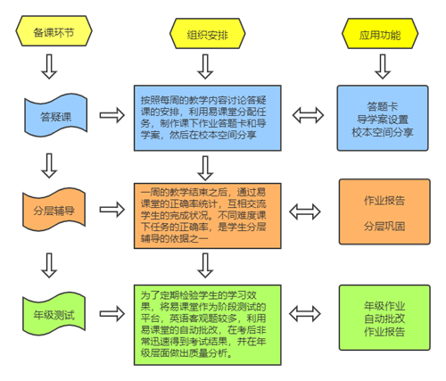 集體備課的流程這樣安排:答疑課→分層輔導(dǎo)→年級測試
