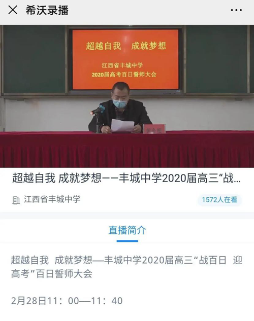 日月于征,風(fēng)雨同行;寒來(lái)暑往,追夢(mèng)不停。在這特殊時(shí)期,學(xué)校不得不延期開(kāi)學(xué)。2月28日,豐城中學(xué)依托希沃錄播遠(yuǎn)程課堂方案,以一種直播方式開(kāi)展2020屆高三百日誓師活動(dòng),讓上千名學(xué)子同“屏”戰(zhàn)疫,該項(xiàng)活動(dòng)點(diǎn)燃了高三學(xué)子的激情,吹響了沖刺的號(hào)角。