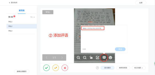 查看學(xué)生的作答,并進(jìn)行批改,可將優(yōu)秀答案推薦到班級(jí),讓學(xué)生之間互評互賞。