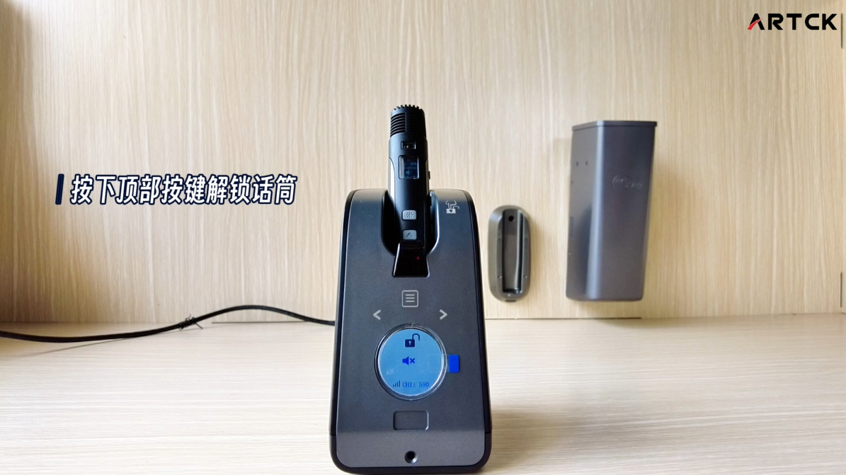 2.按下頂部按鍵解鎖話筒