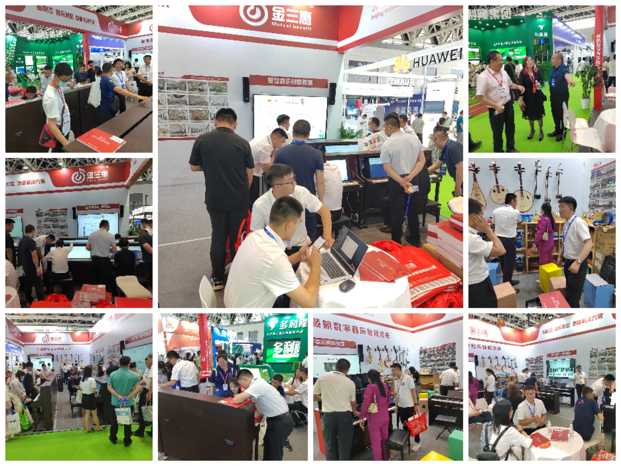 金三惠展位(2A111)現場人潮如涌,來自全國各地的領導、客戶、教師,圍滿了金三惠的展臺,共同咨詢、觀摩、試用與交流。一番火爆場景體現出大家對于金三惠產品的喜愛與認同,更感謝各位領導的蒞臨指導,金三惠持續努力開發新產品,為音樂教育發展助力。
