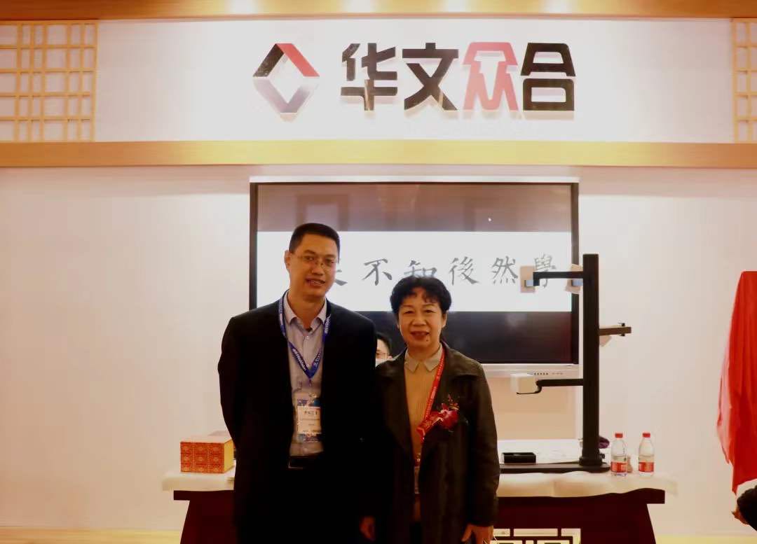 中國教育裝備行業(yè)協(xié)會副會長李興植、華文眾合董事長向大鳳合影