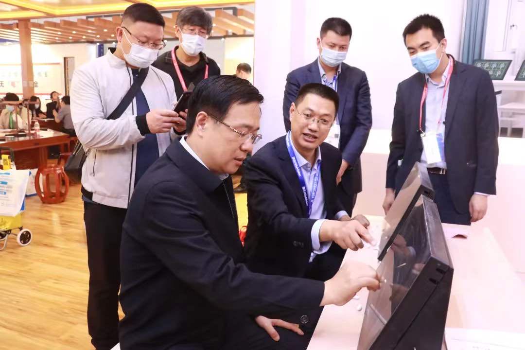 中國教育裝備行業(yè)協(xié)會副會長夏國明參觀體驗(yàn)華文眾合智慧粉筆教室