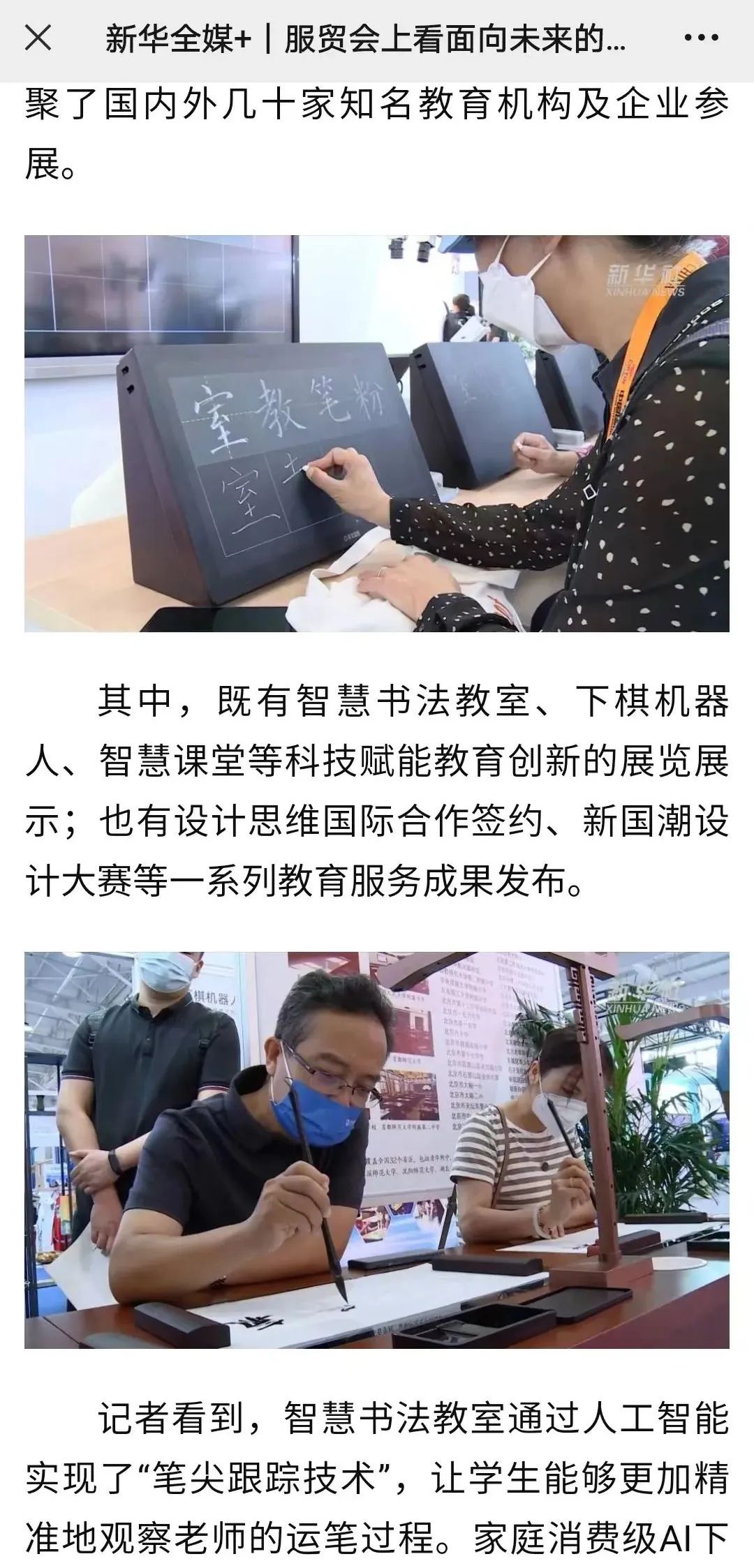 2022北京服貿會已經落下帷幕,華文眾合第八代智慧書法教室和智慧粉筆教室受到了媒體和參觀者的一致認可和好評。