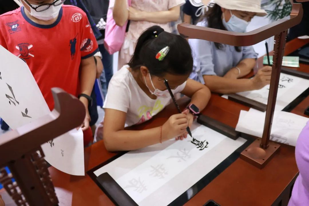 將宣紙鋪在電子屏上,屏幕上的字帖透過薄紙露出清晰痕跡;用毛筆蘸足墨水,在一筆一劃中享受揮毫潑墨的樂趣。專題展上,北京華文眾合科技有限公司展位上的智慧書法教室吸引了不少觀眾躍躍欲試。豎在一旁的筆架,為現場增添了古色古香的氛圍。“看上去像個筆架,其實是個智能終端。”工作人員指了指筆架上隱藏的攝像頭說,攝像頭可以捕捉書寫者的一舉一動,并據此對書法作品進行分析評價。