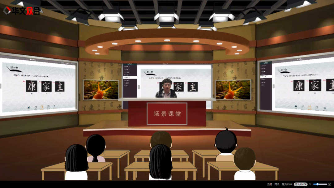2、場景式網絡課堂。通過場景技術讓網絡課堂達到“名師面對面”以及不同地域學生“天涯若同堂”的效果。
