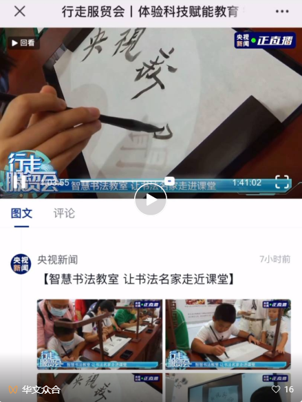 2022中國國際貿易服務交易會上,央視記者體驗第8代智慧書法教育AI評價功能