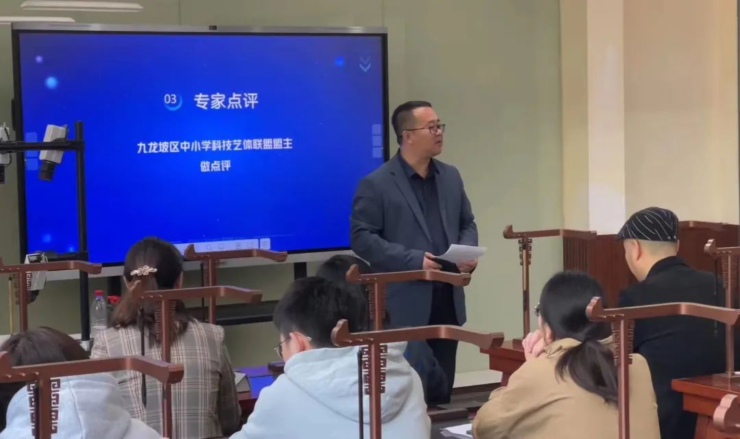 九龍坡區(qū)中小學科技藝體聯(lián)盟盟主、園區(qū)小學副校長趙承作做了現(xiàn)場點評,充分肯定了智慧書法的優(yōu)點,用“智慧賦能書法教室”詮釋了智慧書法教室所帶來的便利性。