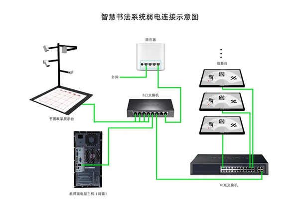 華文眾合智慧書法教室的主要設備包括教師桌、教師中控系統、直播系統、學生桌、交互式數字臨摹臺、智慧大屏(或投影儀)等。