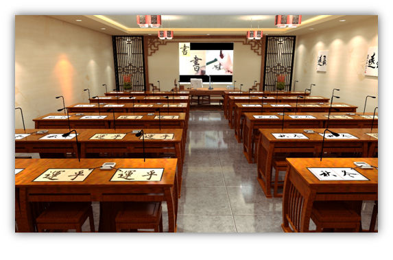 三. EduOffice數字書法臨摹錄播教室建設方案 1. 建設思路 《EduOffice數字書法臨摹錄播教室教學系統》是依據教育部《中小學書法教育指導綱要》和《全日制義務教育語文課程標準》自主研發的數字書法教學系列中的一款高端數字書法教學產品。 系統其靈活的自主學習手段、實用的書法教學工具、豐富的全息書法字及碑帖資源適用于中小學書法教學,系統采用學生臨摹錄播桌,也更便于教師管理課堂秩序。 《EduOffice數字書法臨摹錄播教室教學系統》由觸控一體機、書法教學儀、教師屏、臨摹錄播學生書法桌硬件及《EduOffice數字書法臨摹錄播教室教學系統授課軟件》、《EduOffice數字書法教學備課軟件》等教學軟件構成,實現教師與學生互動書寫講解、點評,如學生觀看通過學生桌屏幕觀看教師講解、示范;任意學生書寫過程和作品的展示與講評;教師也可遠程分配學生小組,進行單人針對性講評或小組式對照講評,有效提高軟筆、硬筆書法授課的教學效果。 系統遵循“指導綱要”中書法教學的規范要求,全面涵蓋書法教學過程中的“教、學、練、評、創”五個環節。通過配備的全息碑帖、軟硬筆全息字庫及基礎教程等課件資源,便于開展篆、隸、草、行、楷等字體的軟硬筆教學、書法知識教學;多種臨摹練習方式,教師分組下發個性化學習內容,臨摹錄播桌實現“讀帖、摹寫、臨寫”的書寫學習需求;運用華樂學堂的視頻資源在課后開展多種書體拓展學習。 《EduOffice書法臨摹錄播教室教學系統》在繼承傳統授課的基礎上,創造了新型書法授課模式,讓書法教學迸發出新活力。 2.建設內容及功能描述 1)建設內容 本項目將建成交付一套完整的《EduOffice數字書法臨摹錄播教室教學系統》,包括: 1. 書法教學主機系統及輔助硬件 臨摹錄播系統服務器 大幅面(超A1)教師端書法教學儀16E 教學用21.5寸高清觸控屏 2. 書法臨摹錄播教室教學軟件系統 書法授課系統 臨摹錄播教學系統 硬筆書寫評測軟件 教師示范講評系統 白板互動系統 書法課件播放系統 字帖生成系統 全息書法字庫 書法課件庫 備課軟件 3. 教師書法條案 4. 書法臨摹錄播學生桌(2人座,含學生書寫儀、高清臨摹屏) 5. 高清視頻網絡、集控系統及綜合布線 2)功能描述 體系化課件資源,讓教師輕松上好專業書法課 1. 軟筆書法教學資源 1) 與教材配備的課件資源 2) 軟筆楷書、行書、隸書基礎講解課件:300個課件,共1680課時,全息字均具備摹寫動畫、雙路示范視頻(解說版) 3) 與教材同步的隨堂練習課件 4) 書法知識課件: 275個課件,共825課時 2. 軟筆臨摹練習課件 3. 硬筆書法教學資源