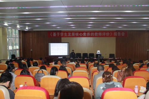 張教授就“新課程改革下探索新型教研模式;基于學科核心素養(yǎng)的課堂教學評價,開展有針對性的課堂觀察,提升學生創(chuàng)新能力,促進教師專業(yè)發(fā)展”等課題進行深入的講解。