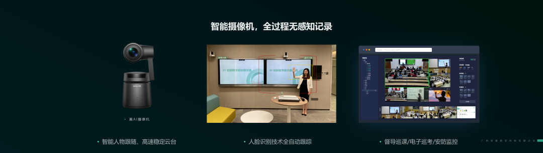 依據(jù)上述PST理念,青鹿智慧教室解決方案融入了真·AI攝像機(jī)、智慧教學(xué)大數(shù)據(jù)平臺(tái)、金課教學(xué)云平臺(tái)等新產(chǎn)品。值得一提的是,青鹿隆重推出新產(chǎn)品——真AI攝像機(jī),能對(duì)教師行為智能分析,對(duì)教學(xué)過(guò)程全紀(jì)錄,全自動(dòng)拍攝形成優(yōu)質(zhì)的校本資源,還可實(shí)現(xiàn)督導(dǎo)巡課、電子巡考、安防監(jiān)控等多場(chǎng)景的應(yīng)用需求。未來(lái)將為線上線下教學(xué)環(huán)節(jié)打通、教學(xué)數(shù)據(jù)的采集統(tǒng)計(jì)與分析等提供了便捷有效的支撐。