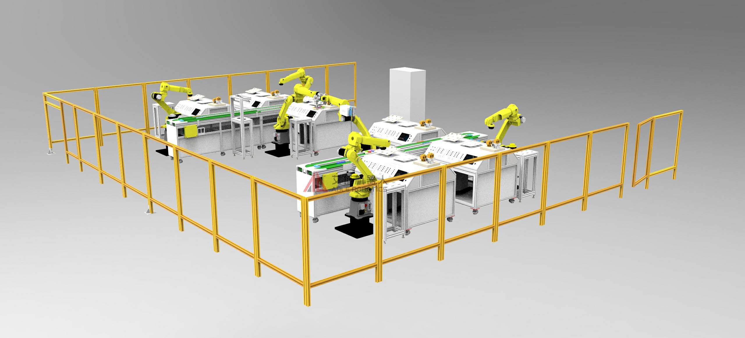 機器人教學工作站由6個單工位教學實訓臺組成,可實現(xiàn)機器人手爪快換模擬教學、機器人搬運模擬教學、機器人行走軌跡模擬教學、電氣操作界面模擬教學、點膠模擬教學。