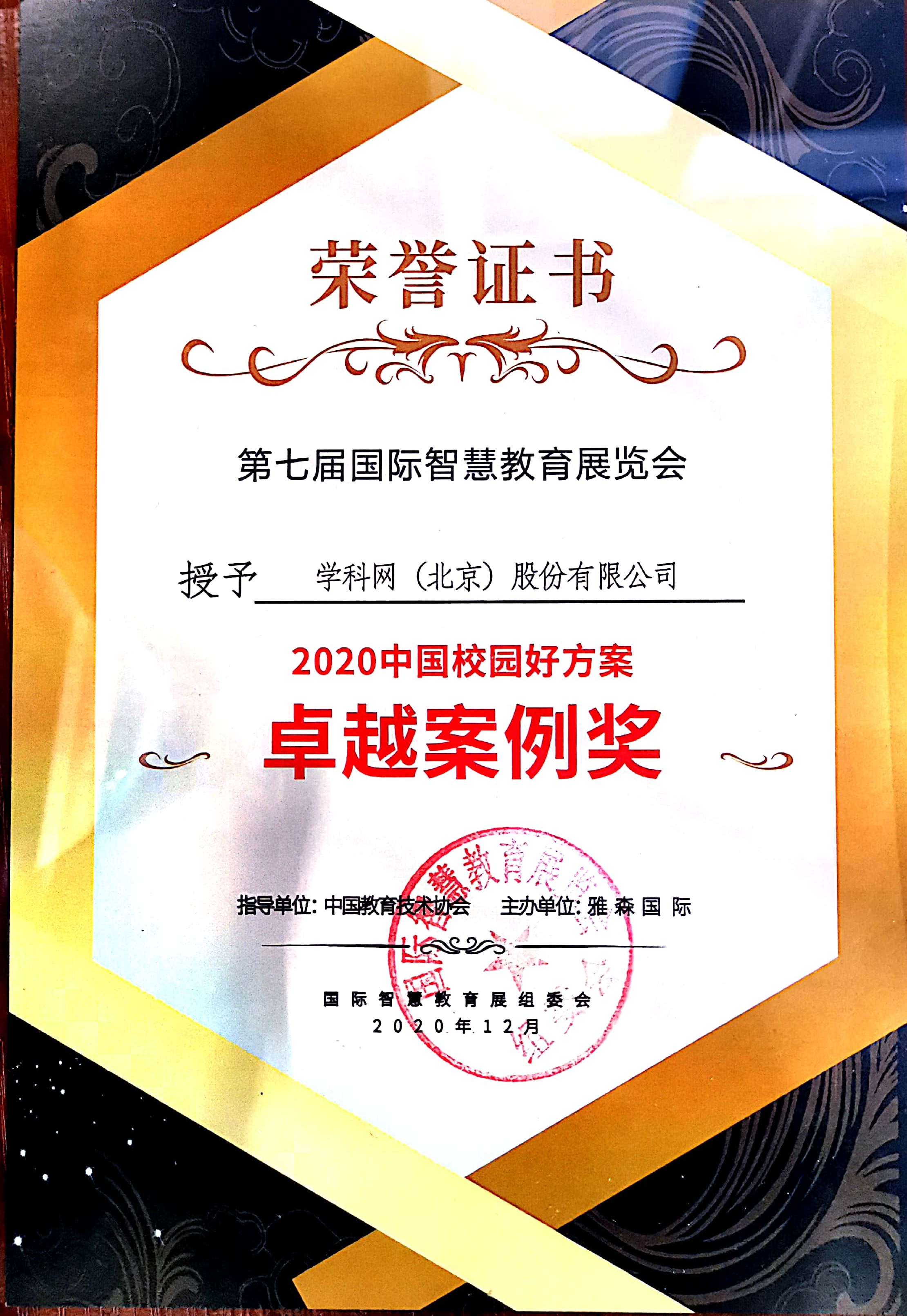 2020年12月,2020國際智慧教育展“校園好方案頒獎典禮”成功舉辦。學科網提交的智慧課堂案例經過激烈角逐,獲得2020中國校園好方案卓越案例獎項。