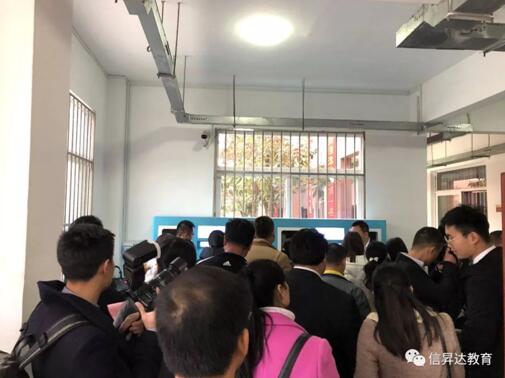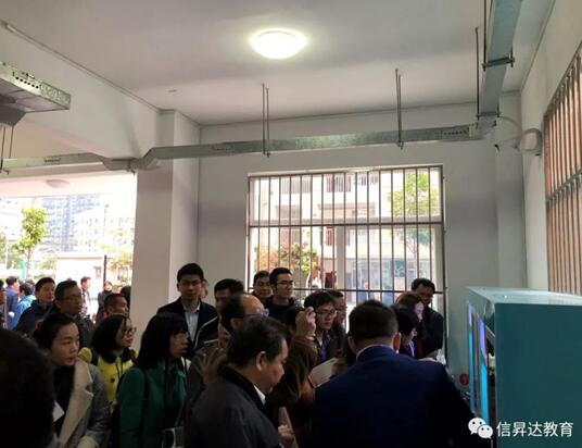 與會代表考察了學校的智慧校園建設。人臉考勤系統、校園音響系統、伸縮兩用看臺、智慧廚房系統、智慧燈光設備、智慧IPAD教室、智課錄播設備、微型圖書館、智慧班牌、智慧書吧、書法教室系統、凈水設備、物聯網系統等學校先進的智能教育教學設備令領導和嘉賓們贊嘆不已。