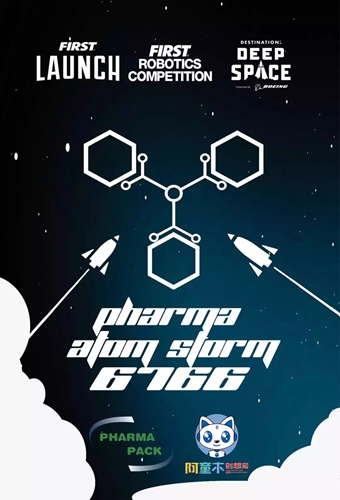 Pharma Atom Storm,隊號6766,于2016年12月在深圳成立。在2017年3月第一次參加FRC中國深圳賽區地區選拔賽,因為第一次參賽,我們并沒有取得好成績,但在2018年,第二次比賽中,我們進入了八強,2019年,第三次參賽,我們有了更高的目標——獲得冠軍!