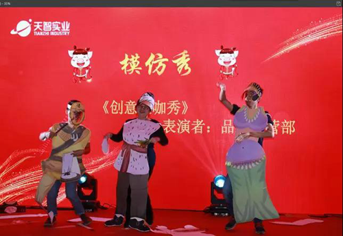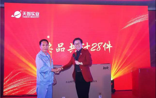 在表演、游戲和晚宴環節中,天智家人們各展所長,為大家帶來一個又一個精彩紛呈的節目。現場掌聲雷動,笑聲迭起,氣氛十分熱烈!抽獎環節豐厚的禮品,現金紅包都不斷激發著現場的氛圍;本次晚會的壓軸大戲“錦鯉大獎”由28項實物獎品和現場李董及各高層領導追加的現金組成;總價值近5萬元“錦鯉大獎”的開出,更是將大會推向了最高潮!