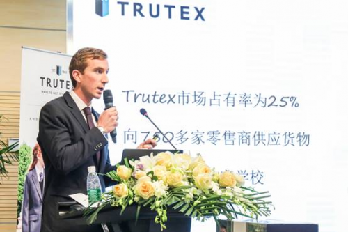 2016年,伊頓紀德與具有一百五十多年悠久歷史的英國校服品牌Trutex正式簽署戰略合作協議,三年來,雙方在產品研發、供應鏈、市場推廣、銷售渠道等方面展開了深入的交流與合作。當天下午,Trutex亞洲區總經理也現場分享了其產品科技,“Trutex西服(70%)使用的是可再生的面料,稱為Revive,通過Revive技術以塑料瓶為原料重新紡成紗線,平均每件西服的制造約使用31個PET塑料瓶。用顛覆式創新設計踐行環保理念,從2011年到今天Trutex已經保存了2080平方米的森林。同時,Trutex也是英國學生服裝的第一家碳中和公司”