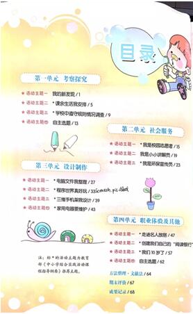 綜合實踐活動課程是一門與語文、數學、英語等學科課程并列的活動類課程,本書它不強調書本知識的學習,主要培養你在生活中發現問題、解決問題、動手操作和創意設計的能力,為你創設走出課堂、走向社會、實踐體驗和開拓眼界的機會。
