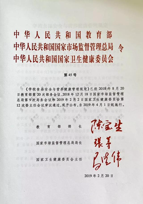 從政策上看,國家對(duì)學(xué)校食品安全問題已有明確的規(guī)定。今年3月11日,教育部等三部門聯(lián)合印發(fā)《學(xué)校食品安全與營養(yǎng)健康管理規(guī)定》,對(duì)學(xué)校集中用餐的食品安全與營養(yǎng)健康進(jìn)行規(guī)范管理,2019年4月1日起施行。