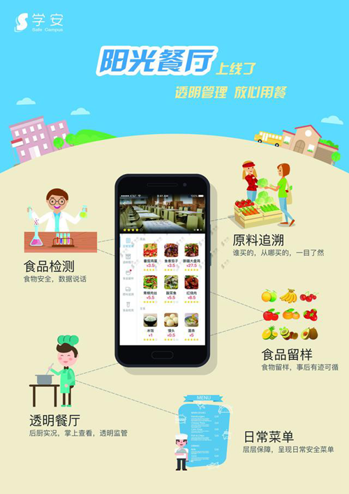 安全的最大敵人就是僥幸,食品安全的建設(shè)和管理作為學(xué)生家庭之外最重要的“保護(hù)罩”需要更加引起我們的重視和警覺。學(xué)安-陽光餐廳,透明管理、放心用餐,給您和您的孩子一份陽光安全菜單!