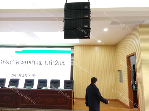 隨著金融需求增大,為促進各項業務的穩健發展,信息交流,工作匯報越來越頻繁。這次的項目有三個區域,凱里農信社要求建設的會議系統做到管控便捷,會場聲音傳輸穩定,會議討論音質清晰、有序發言。為此,佳比設計了一套集專業擴聲系統、手拉手數字會議系統、高清矩陣系統、視像跟蹤為一體的音視頻解決方案。