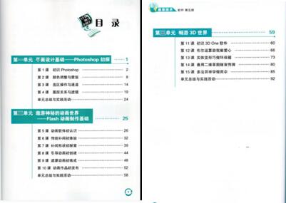 本書分為“平面設(shè)計(jì)基礎(chǔ)”、“遨游神秘的動畫世界”、“暢游3D世界”三個(gè)單元,其中第三單元“暢游3D世界”中以3D One為重點(diǎn)學(xué)習(xí)對象,結(jié)合生活中的實(shí)際案例,讓同學(xué)們感受到學(xué)習(xí)3D技術(shù)的樂趣。