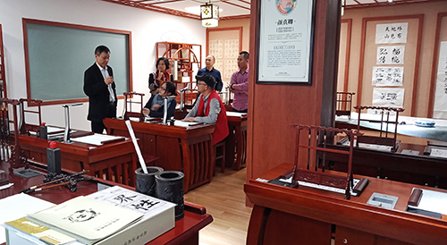 在董事長(zhǎng)陳登貴先生的陪同下,東莞市書法家協(xié)會(huì)一行領(lǐng)導(dǎo)參觀了智慧書法教室展廳,詳細(xì)了解了公司智慧書法教室的軟、硬件研發(fā)情況,并對(duì)廣視通智慧書法教室所取得的成績(jī)給予了高度評(píng)價(jià),同時(shí)也提出了一些建設(shè)性、針對(duì)性和可操作性建議。