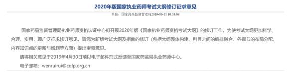 你們知道么,國家藥品監督管理局網站3月11日發布信息:國家藥品監督管理局執業藥師資格認證中心擬開展2020年版《國家執業藥師資格考試大綱》的修訂工作。