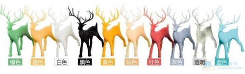 光固化3D打印機使用液態光敏樹脂,以及一些工業用途特種樹脂,例如失蠟鑄造用樹脂蠟、牙科專用樹脂、耐熱或柔性樹脂。光固化3D打印機耗材顏色選擇有限,創想三維暫時最多僅可提供十種。