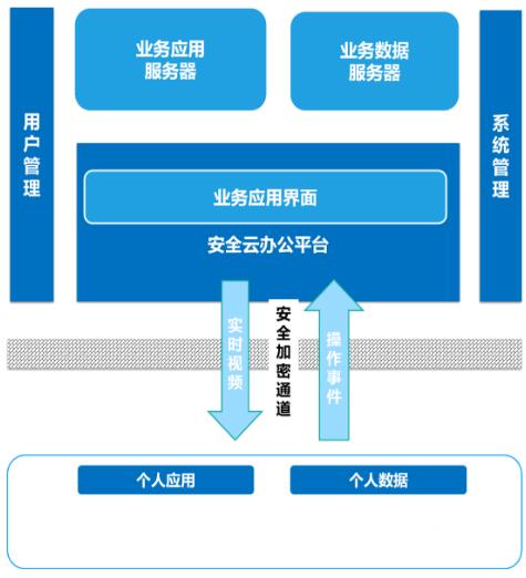 2、安全工作空間,是在傳統的數據安全的基礎上,在服務器與本地設備之間建立了一條安全的隔離帶。應用與數據都存放在服務器端,用戶通過本地設備操作服務器端的應用讀取服務器端的數據,操作結果只是通過視頻傳輸到本地設備,實現真正的數據不落地。在數據不落地和數據加密的前提下,安全的使用業務應用和業務數據。