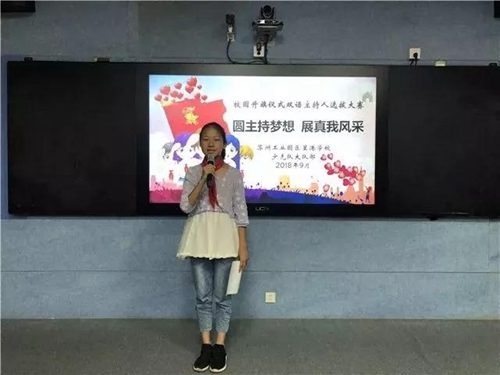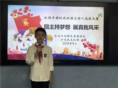 為了豐富同學們的校園文化生活,學校開展了一系列活動。星港學校少先大隊部此前舉辦了別開生面的校園升旗儀式雙語主持人選拔大賽,他們在黑板前的這一方舞臺圓主持夢想、展真我風采。