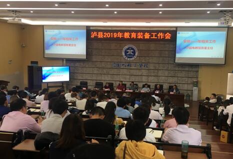 為貫徹落實四川省和瀘州市2019年技裝和電教工作會議精神,進一步推動瀘縣裝備事業健康、快速發展。 4月10日,由瀘縣教育和體育局組織召開的2019年瀘縣教育裝備工作會在瀘縣城北小學順利舉行。瀘縣教育和體育局分管領導、電化教育館全體人員,各鎮(街道)教管中心教育干事、各中小學校分管校長、裝備室主任以及中心幼兒園分管園長,總共240余人參加了此次會議。