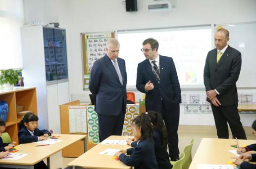 隨后約克公爵安德魯王子陸續參觀了學校的幼兒園、中小學教學樓、室內風雨操場等場所,約克公爵安德魯王子一行還與學校的孩子們進行了親切的零距離互動,體驗融僑賽德伯學校國際化標準的硬件配套,感受到融僑賽德伯學校德、智、體、群、美全面發展的核心教學理念。