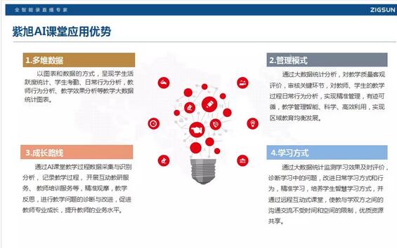 紫旭AI課堂以”人工智能助力教育,因材施教精準(zhǔn)教學(xué)”為宗旨,圍繞學(xué)校教、學(xué)、管、評(píng)業(yè)務(wù),采用過(guò)程化數(shù)據(jù)分析開(kāi)展教學(xué)研究和學(xué)生綜合素質(zhì)評(píng)價(jià),實(shí)現(xiàn)教學(xué)評(píng)價(jià)從單一維度向綜合性多維度轉(zhuǎn)變,促進(jìn)學(xué)校精準(zhǔn)管理、教師精準(zhǔn)教學(xué)、學(xué)生精準(zhǔn)學(xué)習(xí)。