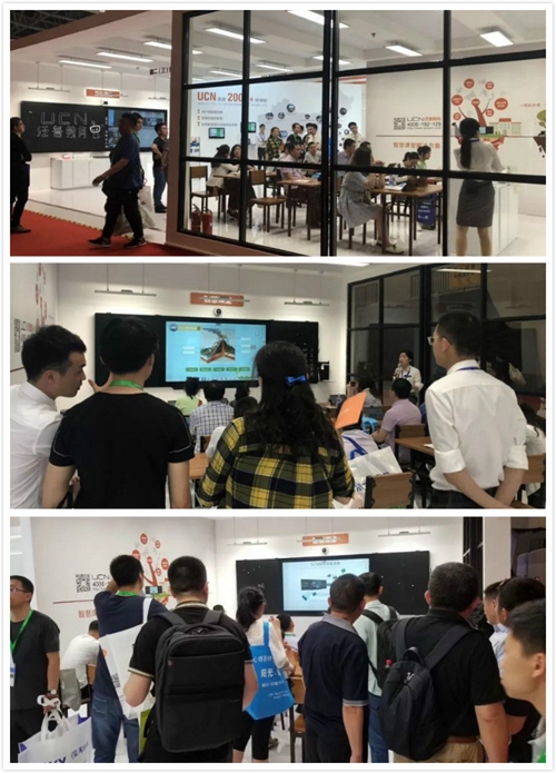 說到做到!2019系列多樣化的功能立刻吸引了不少小學生在這款“神奇黑板”上揮毫潑墨,畫的還有模有樣,為UCN的展臺增加了又一道風景。