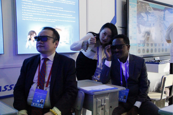 圖:安哥拉教育部長一行體驗V視界教室產品
