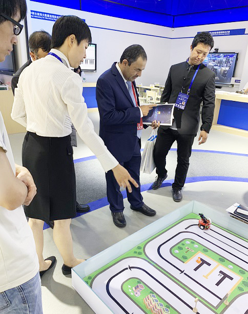 在織未來產品區,南蘇丹教育部部長在認真觀看機器人表演后贊不絕口,他認為偉東云教育“織未來”產品不僅具備國際化前沿水準,更集知識性和趣味性于一體,在幫助青少年進行編程學習的同時,也能有效提升青少年邏輯思維及創新能力。