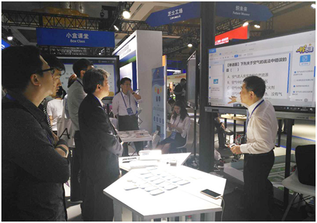 在U伴慧學產品區,多國部長認真聆聽講解并展開深入探討。有嘉賓表示,該產品對課堂教學效果的提升作用顯著,尤其是在欠發達地區,不但能為當地學生帶去優質教育資源,更能有效提升當地教育信息化水平,這對促進教育公平發展是極其重要的。