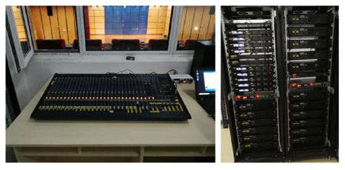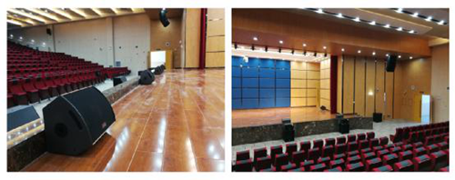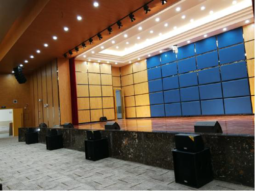 該項目報告廳,觀眾容納量超800余人,對聲場的環境設計十分重要,如廳內聲壓分布均勻度、音頻質量、系統穩定性有著高要求,F代的多功能報告廳既用于語言類擴聲使用,更兼具舞臺演出音頻擴聲用途,在擴聲系統設計時,依據場地深度、寬度、高度對擴聲設備的選配、布局安裝作了科學合理的計算分析。