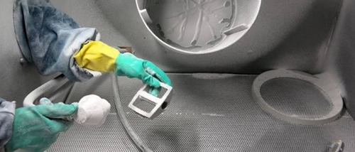 我們已經(jīng)構(gòu)建了一個(gè)算法,只需單擊一下,就可以將您的零件空心化。它分析對(duì)象的幾何結(jié)構(gòu),并確定在哪里可以刪除多余的電源。一旦3D打印部件從3D打印機(jī)中取出,我們的專業(yè)技術(shù)人員會(huì)對(duì)其進(jìn)行一些后處理。它所經(jīng)歷的過程稱為噴砂。使用噴砂工具,技師在孔內(nèi)噴射空氣和粉末(砂),以便清除多余的粉末。