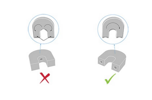 大多數(shù)情況下適用于將孔放置在不可見的表面上,例如三維模型的底部。將兩個(gè)孔一個(gè)挨著放置是毫無意義的,粉末將無法正確清除。兩個(gè)(或更多)孔之間應(yīng)該有一定的距離,讓粉末在零件內(nèi)部循環(huán)。最好將孔放在距離彼此較遠(yuǎn)的邊緣或區(qū)域附近,至少一個(gè)平面上有一個(gè)孔,另一個(gè)平面上有一個(gè)孔。