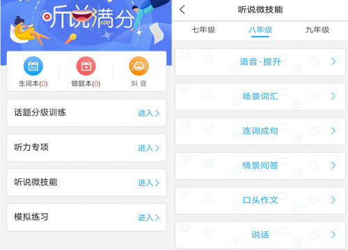 天學網英語聽說滿分(包括初中版和高中版),采用人機對話模式,即時反饋,讓你自信開口說英語。從發音糾正、情景對話、口頭作文、連詞成句等方面進行針對性微技能訓練,全面提升大家的英語聽說能力。