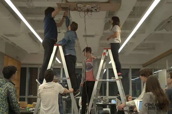 而制作懸掛式3D打印機小組,在最初階段一直在思考如何設計這架打印機的外殼,他們逆向思考,跳出“盒子”的框架,制作出的打印機超越尺寸限制,能打印出高如整個房間的產品!就這樣,他們在整個項目中不斷遭遇障礙、面對技術瓶頸、完成項目,像真正的創新者一樣面對來自現實世界的挑戰。