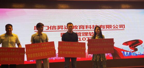 第八屆廣西教育裝備展示會支教扶貧愛心捐贈儀式上,信昇達教育作為中國教育裝備行業協會理事單位以及廣西教育裝備行業協會會員單位,向支教扶貧獻出自己的一份愛心!