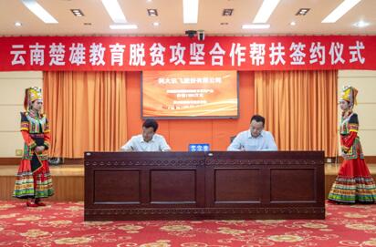 7月30日,云南楚雄教育脫貧攻堅合作幫扶簽約儀式在楚雄政務中心舉行,科大訊飛作為企業代表為助力楚雄當地教育脫貧攻堅工作,捐贈了價值一千三百五十萬元的智慧教育系列產品,以科技手段助力當地教育革新發展。教育部科學技術司司長雷朝滋、云南省委高校工委副書記陳世波、楚雄彝族自治州副州長楊虹等領導以及十余家企業代表出席簽約儀式現場?拼笥嶏w副總裁、西南區總經理婁超代表科大訊飛出席了簽約儀式并發言。同期,參會的企業有中國移動、賽爾網絡、聯想集團、天聞數媒、海康威視、網龍華漁、好未來、奇安信、商湯科技等。